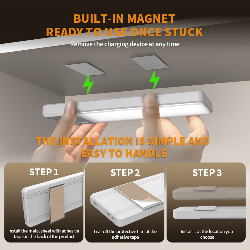 The EGH 5000mAh wide-screen Cabinet Light features an ultra-wide LED panel that casts a broad, shadow-free beam across your entire workspace. Unlike narrow stick-on lights, its wide-screen design ensures even illumination from edge to edge, making it ideal for kitchen cabinets, workbenches, closets, or display shelves where every corner needs to be clearly visible.